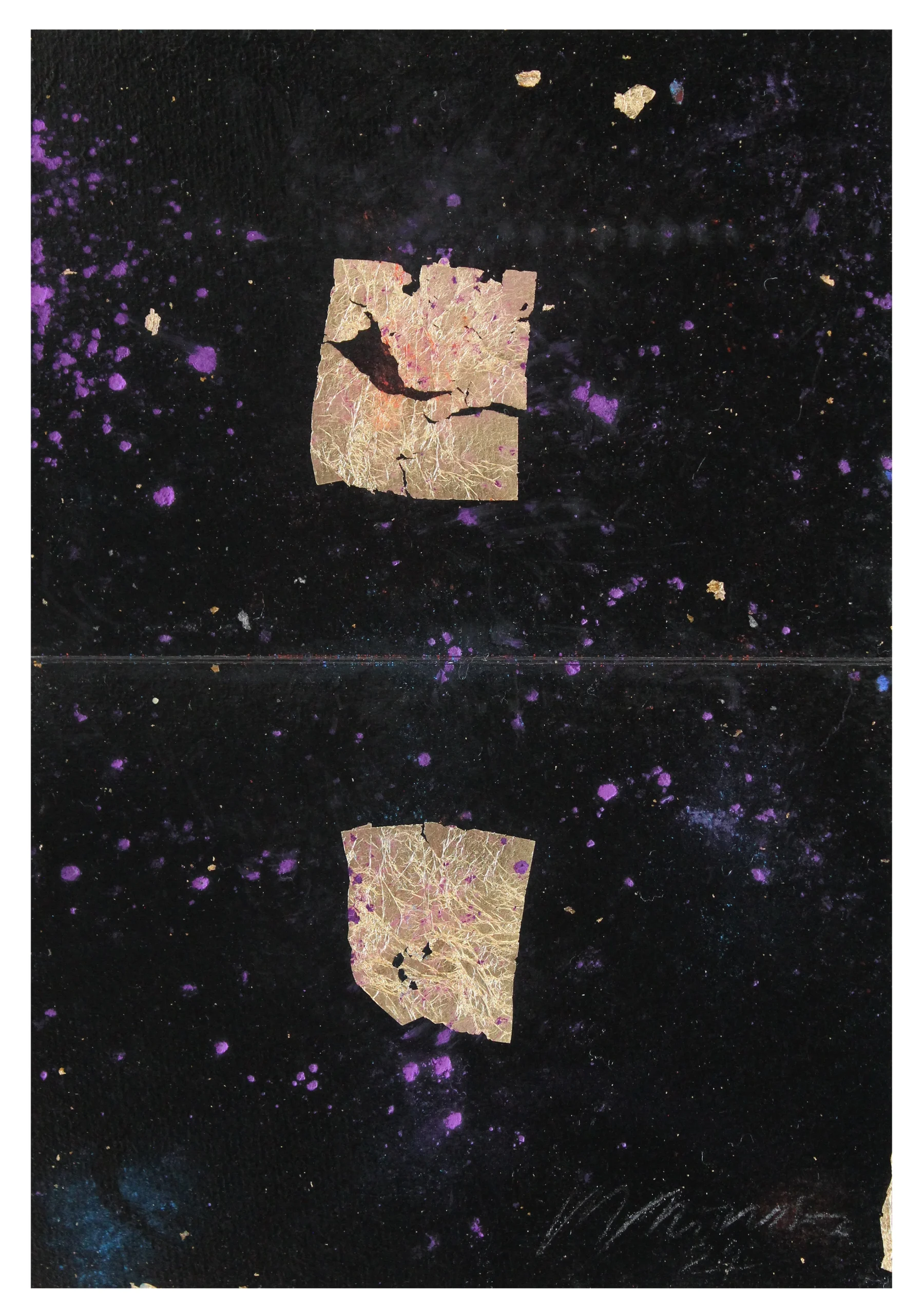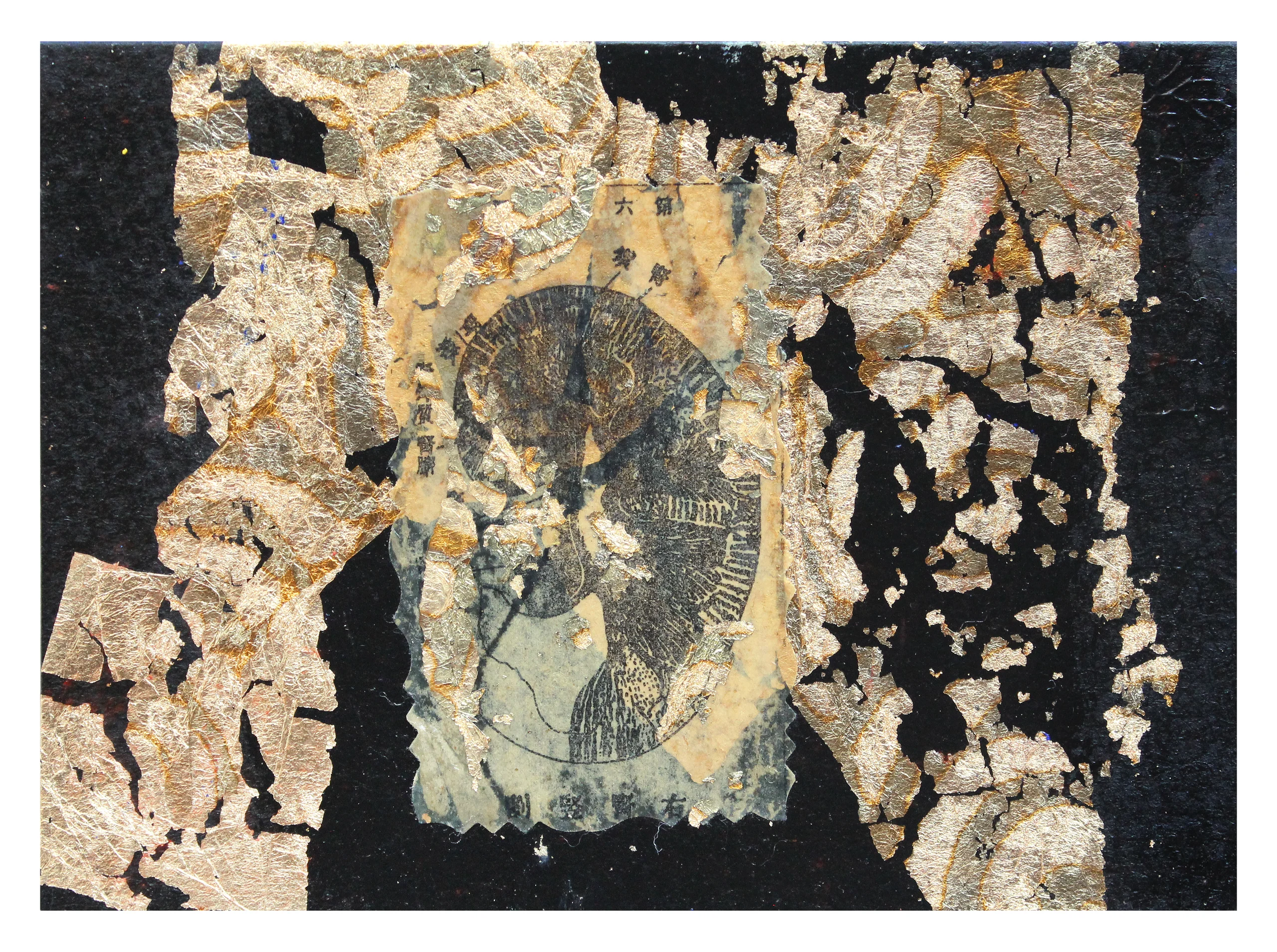 Mixed media on paper (variegated metal leaf)