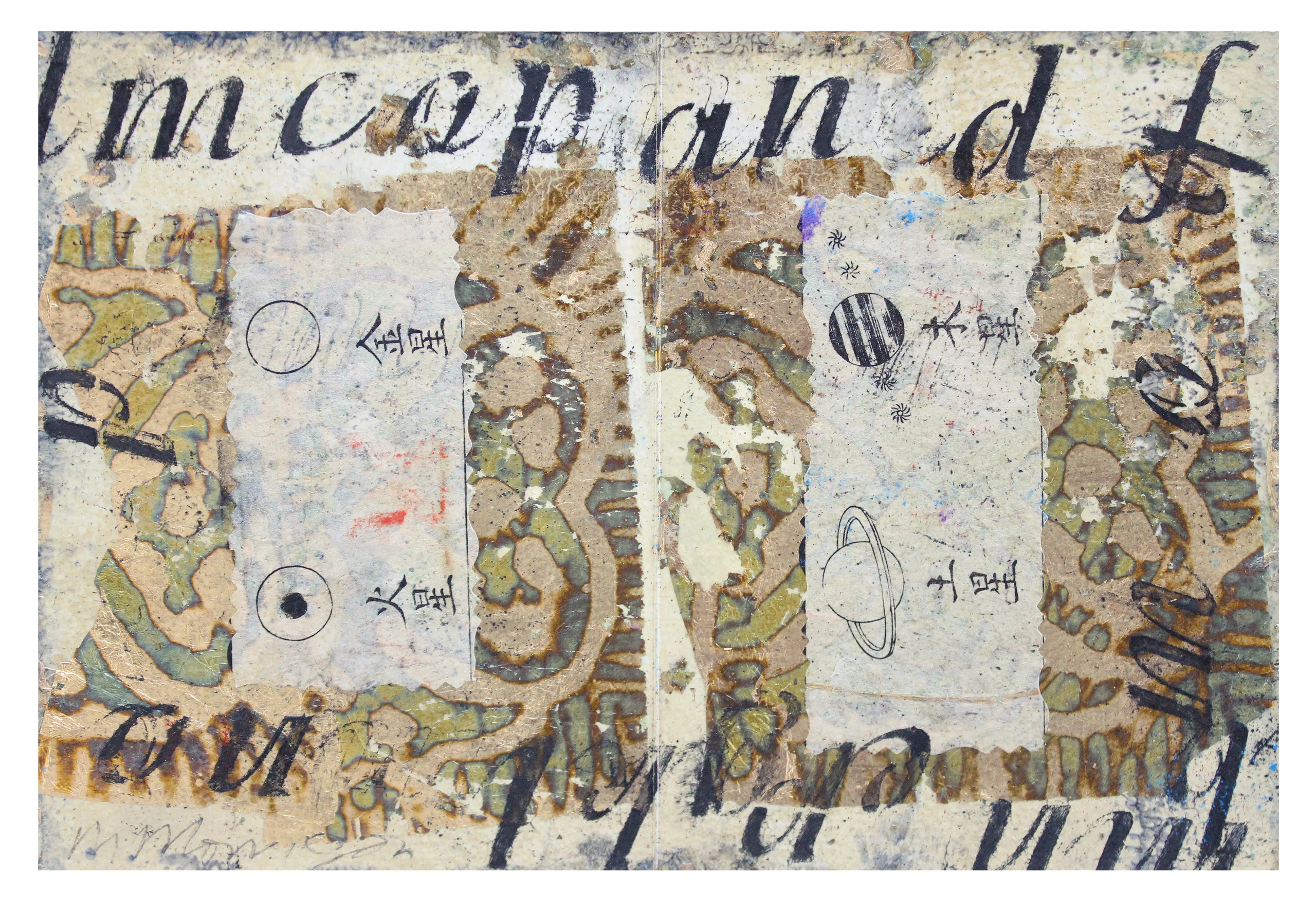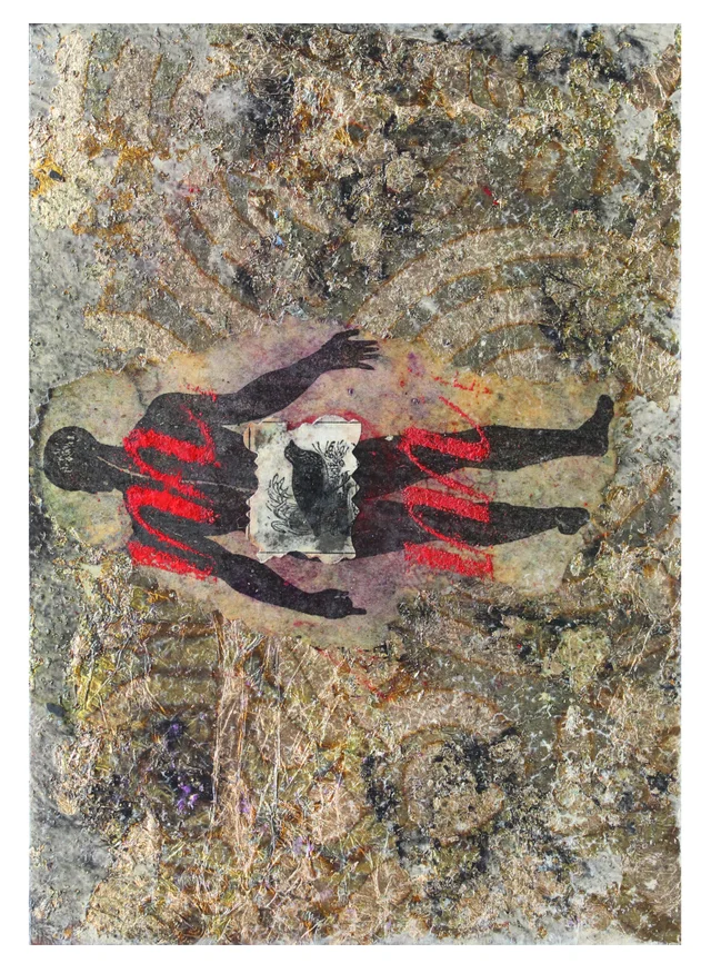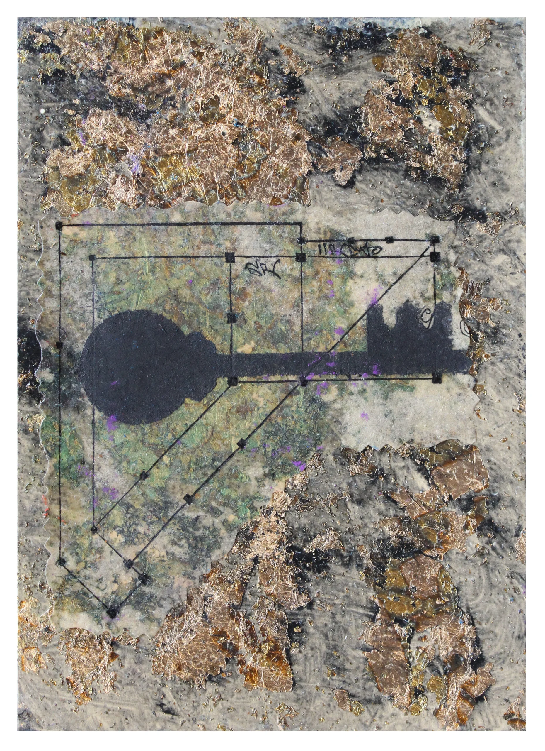 Mixed media on paper (variegated metal leaf)