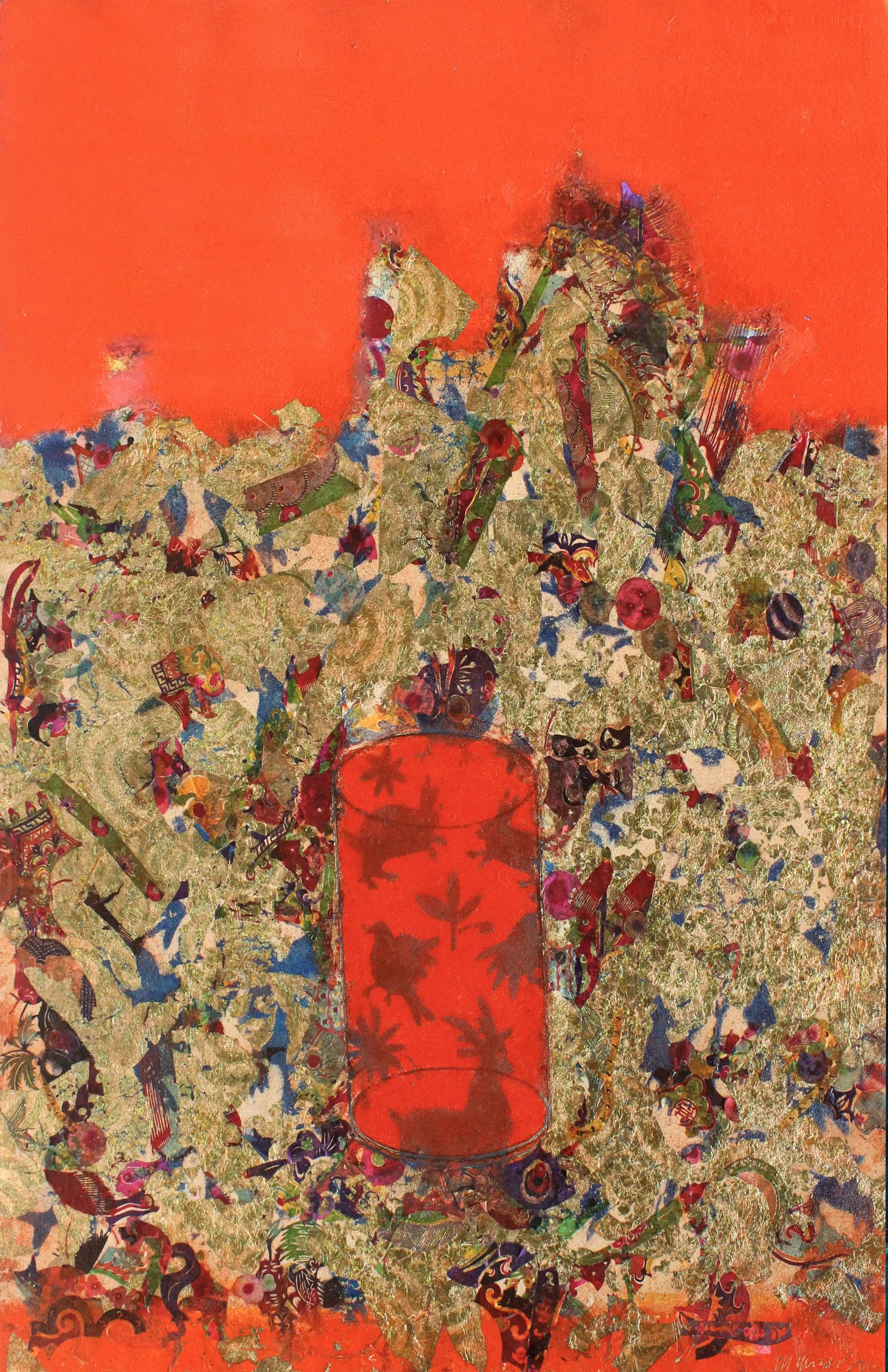 Mixed media, variegated metal leaf on paper