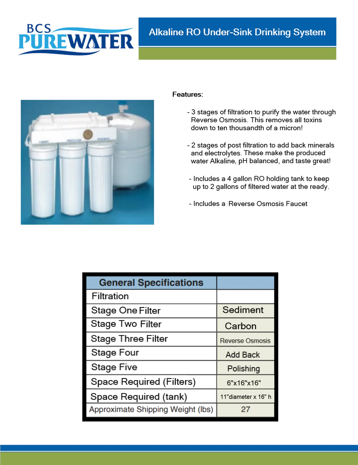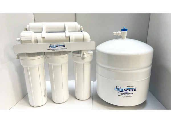 4-Gallon Storage Tank: This 4 gallon bladder-tank holds around 2.5 gallons of water, and uses the remaining 2.5 gallons of space to pressurize the system.